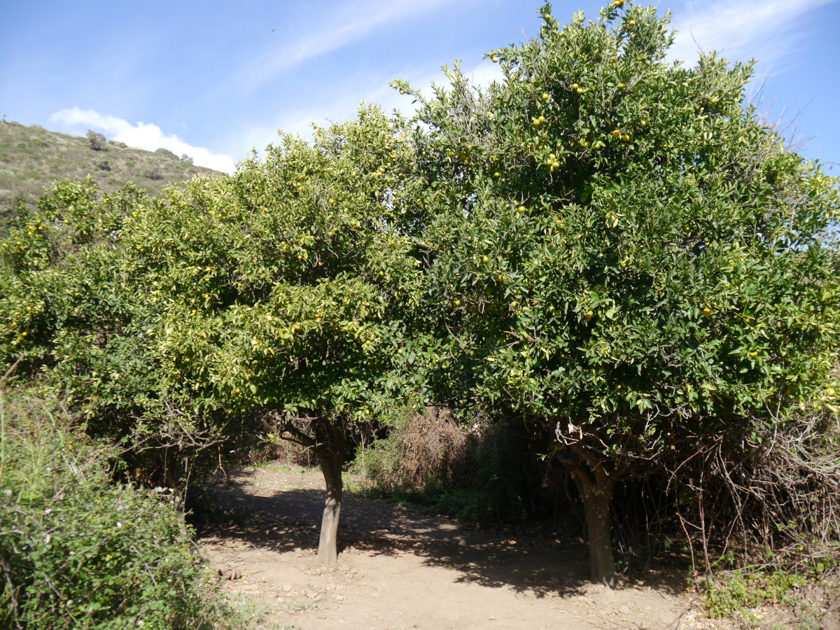 An einer Ruine entscheidet man sich für die Schlucht oder den Strand mit Picknickplatz. Zur Schlucht führt der Weg durch anscheinend aufgegebene Orangen- und Zitronenplantagen. Im späten November sind die ersten Früchte reif. Das Flussbett ist voller rundgeschliffener Steine. Und dann beginnt die Schlucht. Ein kurzes Stück kann man hineingehen, ohne nass zu werden. Die interessanten Stellen erreicht man so leider nicht.