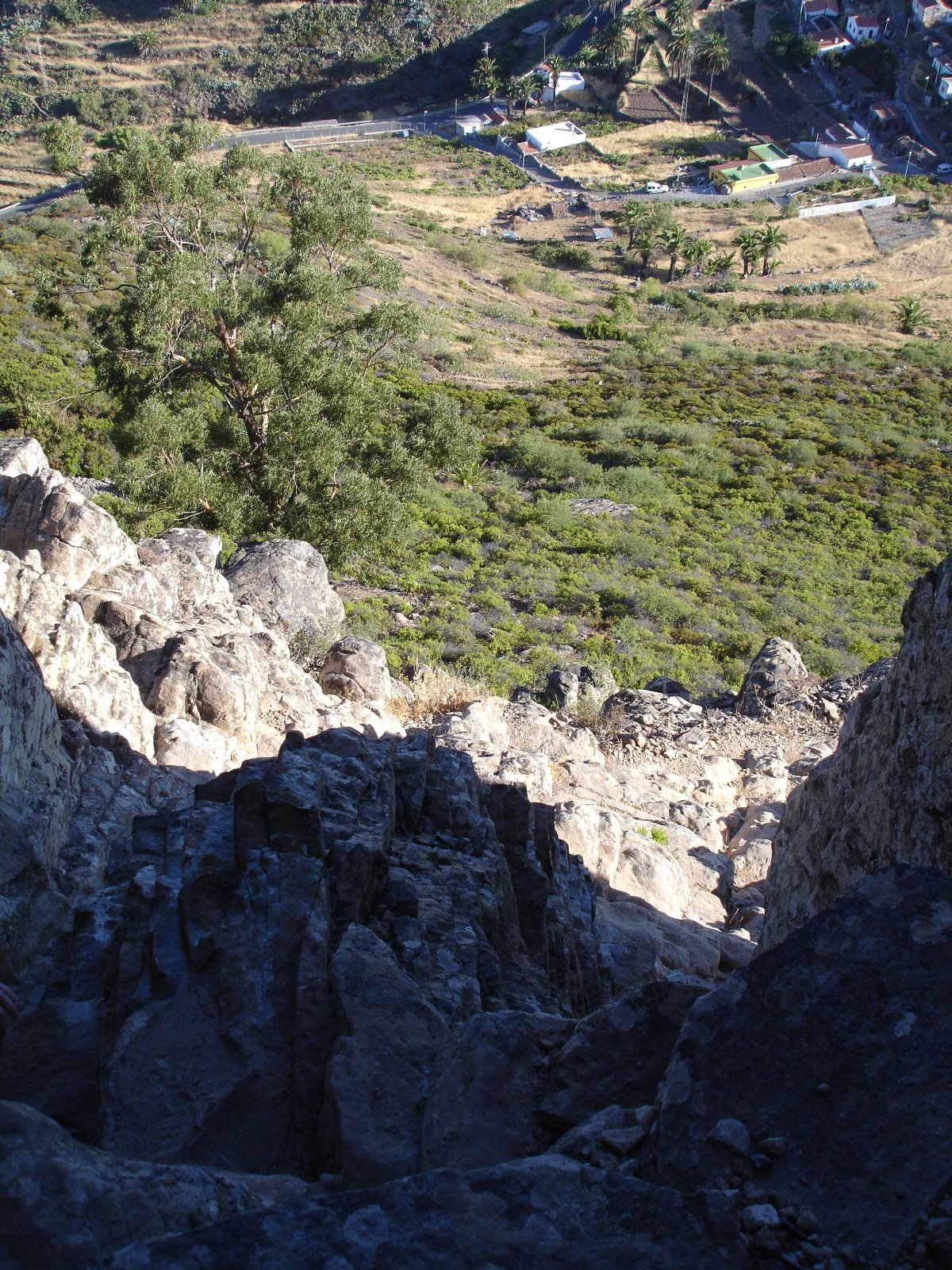 Von Chipude aus wandern wir Richtung Gerian, kommen an abgeernteten Feldern sowie an einem Friedhof vorbei. Laut Karte sollte dieser Weg nach La Vizcania führen, aber der Berg sowie das tiefe Tal lassen sich nicht überqueren. Also laufen wir einen anderen Weg nach Chipude zurück, setzen uns in ein kleines Restaurant, und essen zu Mittag, da der Bus erst zwei Stunden später zurückfährt.