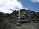 Für den Rückweg wählen wir die Piste, welche die Geländebusse zurück zur Talstation nehmen. Die Piste hat deutlich weniger Gefälle und ist einfacher zu gehen. Am Wegesrand steht ein Denkmal für Antonio Spina, der in den 1960er Jahren in C.A.I. Catania (Alpenverein Italien) aktiv war. Ein Schlenker am Ende führt uns an den Silvestri-Kratern vorbei.