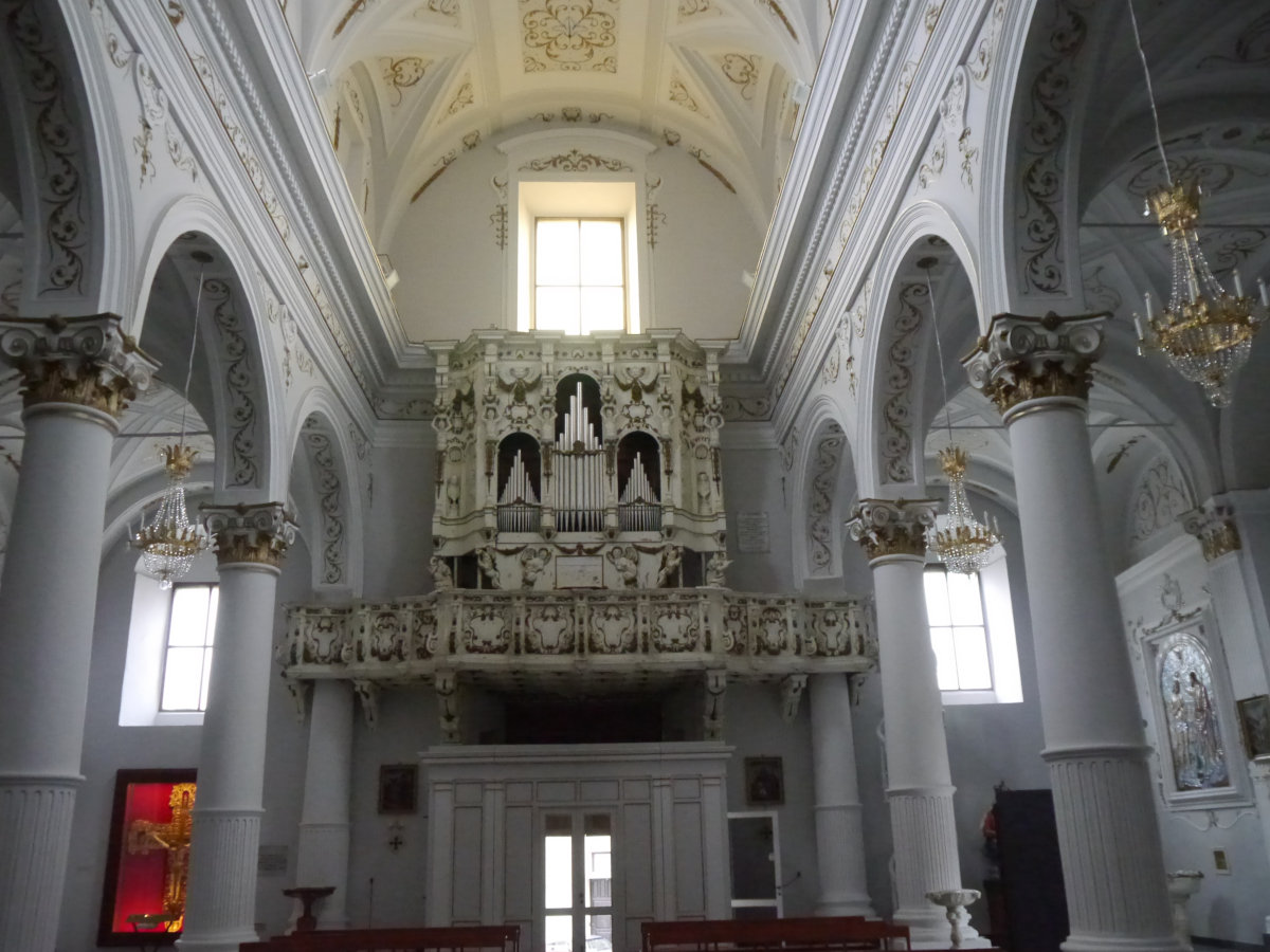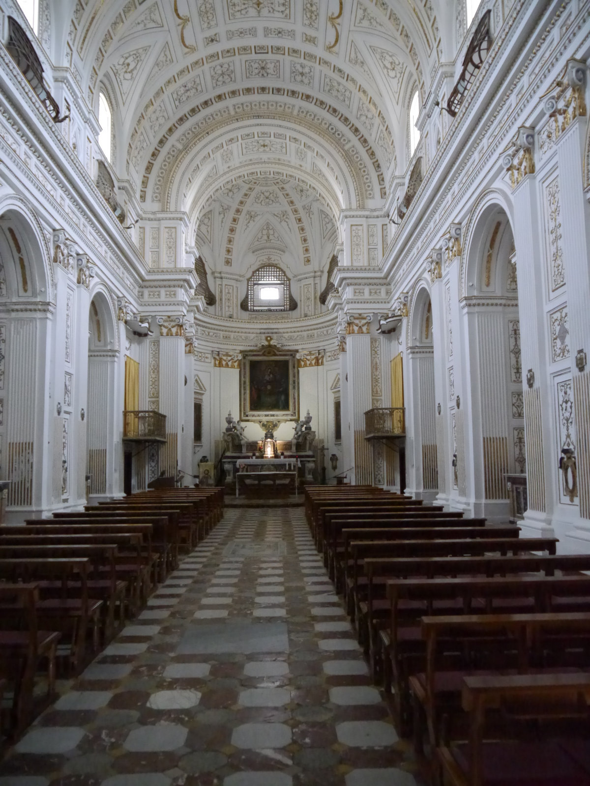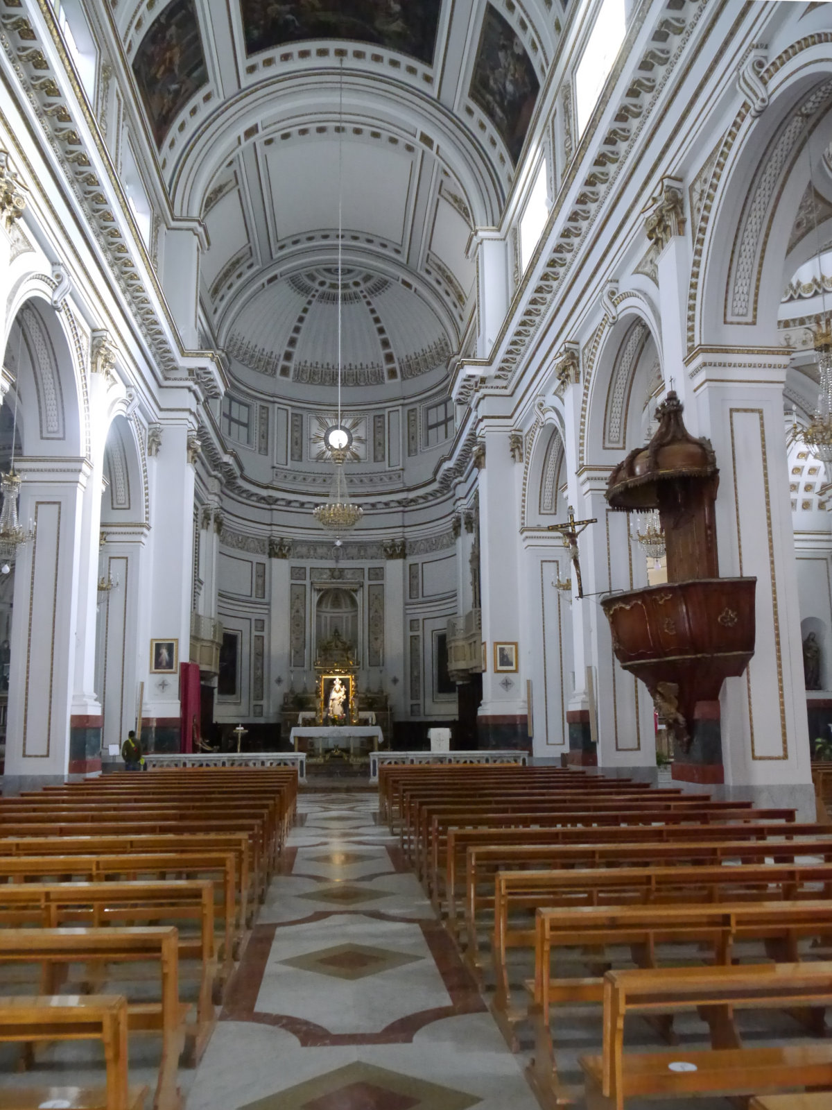 Der Innenraum, der durch zwei Säulenreihen in drei Schiffe unterteilt ist, umfasst neben dem Hauptaltar zehn Kapellen. Die Stuckverzierungen der Schiffe und Kapellen wurden nach Entwürfen von Salvatore Gravanti in den Jahren 1830-31 und 1839-40 ausgeführt.