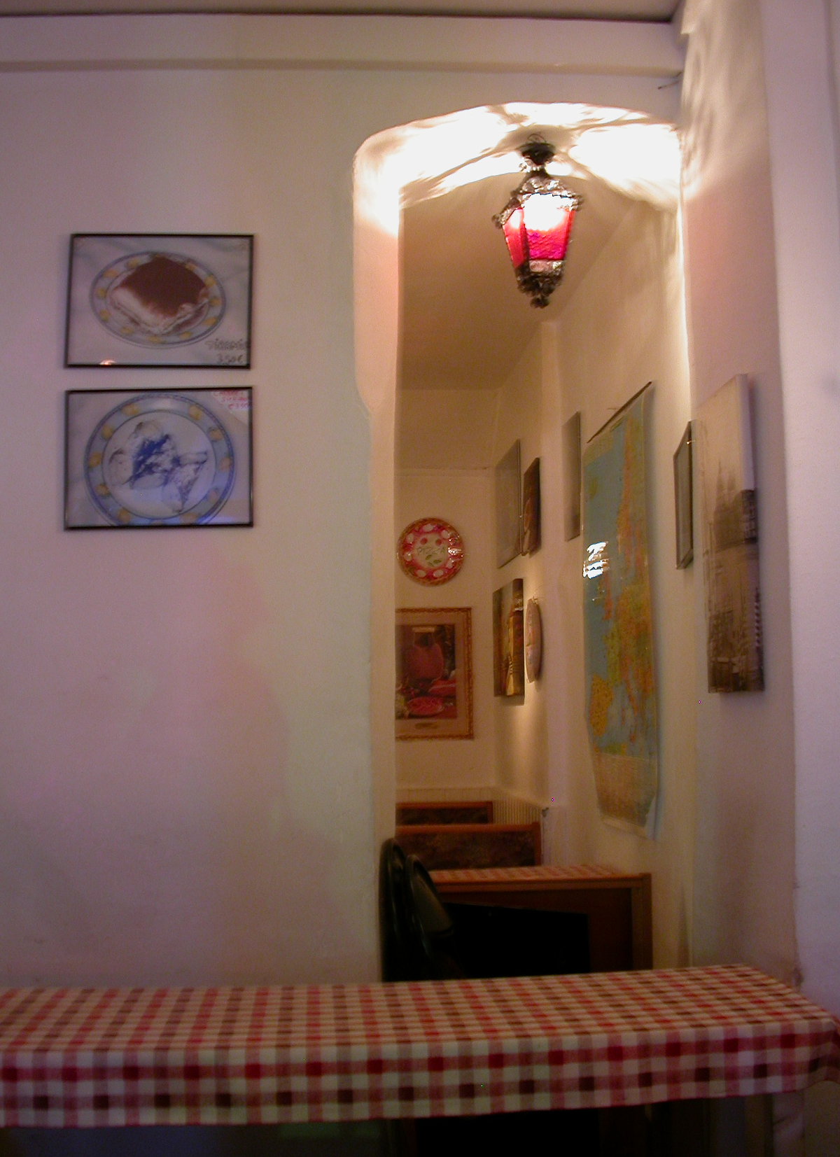 Die Trattoria Venezia fällt kaum auf. Draussen stehen Holztische und Bänke. Der Innenraum enthält nur wenige Tische, mit den typischen rot-weiß-karierten Decken.